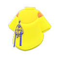 The Frye top is a top item in Animal Crossing: New Horizons introduced in the 3.0 Free Update. The item can be worn by either the player or any villagers. When it is put on, a small snippet of "Clickbait" from Splatoon 3 plays. This item is based on the outfit worn by Frye as well as the Eelneck Tank gear in Splatoon 3.