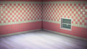 The peach two-toned tile wall can be obtained from Nook's Cranny for