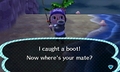 - "I caught a boot! Now where's your mate?" —New Leaf